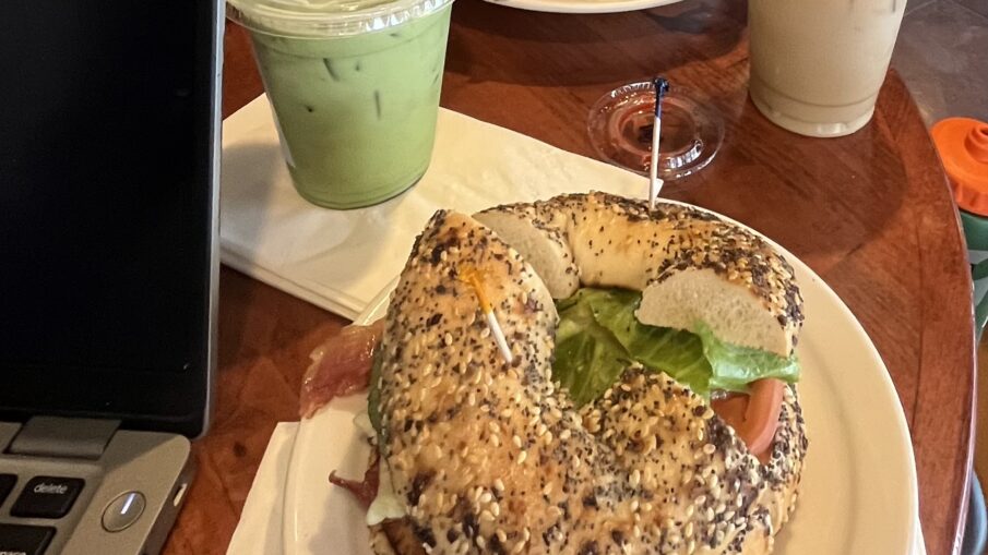 The iced matcha was about 16 ounces, but it tasted earthy over ice, with a right touch of sweetness to enhance the green tea flavor, in which it tied perfectly with the BLT bagel, leaving me full and refreshed as I studied in the bustling café.